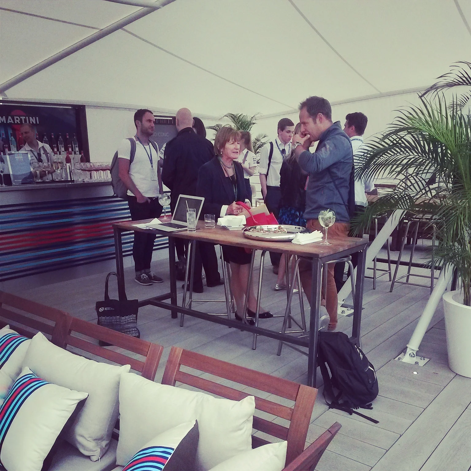 The motorhome was very cool, with 3 floors in the very classy and classic Martini Racing colours. It's amazing to think they get transported around the world! The top floor/rooftop terrace/bar was where it was all happening. Fantastic Martini cocktails and canapes which I am told were prepared by Michael Caines (I may be totally wrong but he was there for sure) as well as Q&A with Felipe Massa and Valtteri Bottas. Pat Symonds, Chief Technical Officer to Williams F1 was there too and other top F1 people.